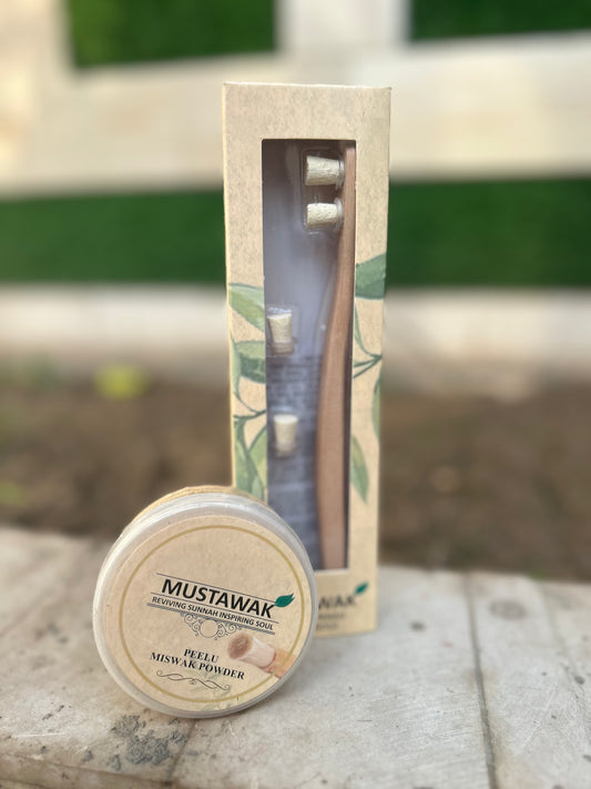 Organic Magical Teeth Whitening Kit | Miswak Toothbrush and Teeth Whitening Powder